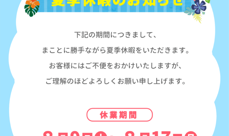 平素は格別のご愛顧を賜り、厚く御礼申し上げます。 誠に勝手ながら、当社では下記の期間を年末年始休業とさせていただきます。 期間中はご不便をおかけいた...